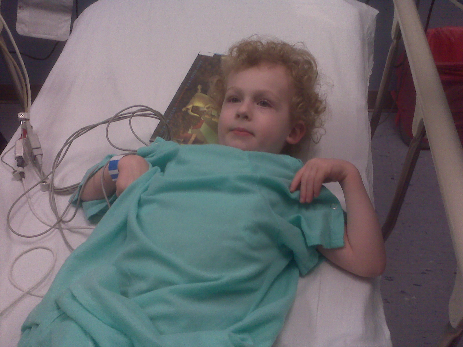 In fact, other than wanting to slap the tech who lied and told Ian that having his blood drawn would be “fun,” then flubbed it the first time, meaning that a now hysterically screaming Ian had to be forcibly held to the bed while they successfully inserted the port, then told me to calm down when I started to cry after several minutes of listening to my son screaming for Mommy to make them stop because it was “OUCHY, MOMMY NO!” I can sincerely say that mostly what I felt was gratitude.