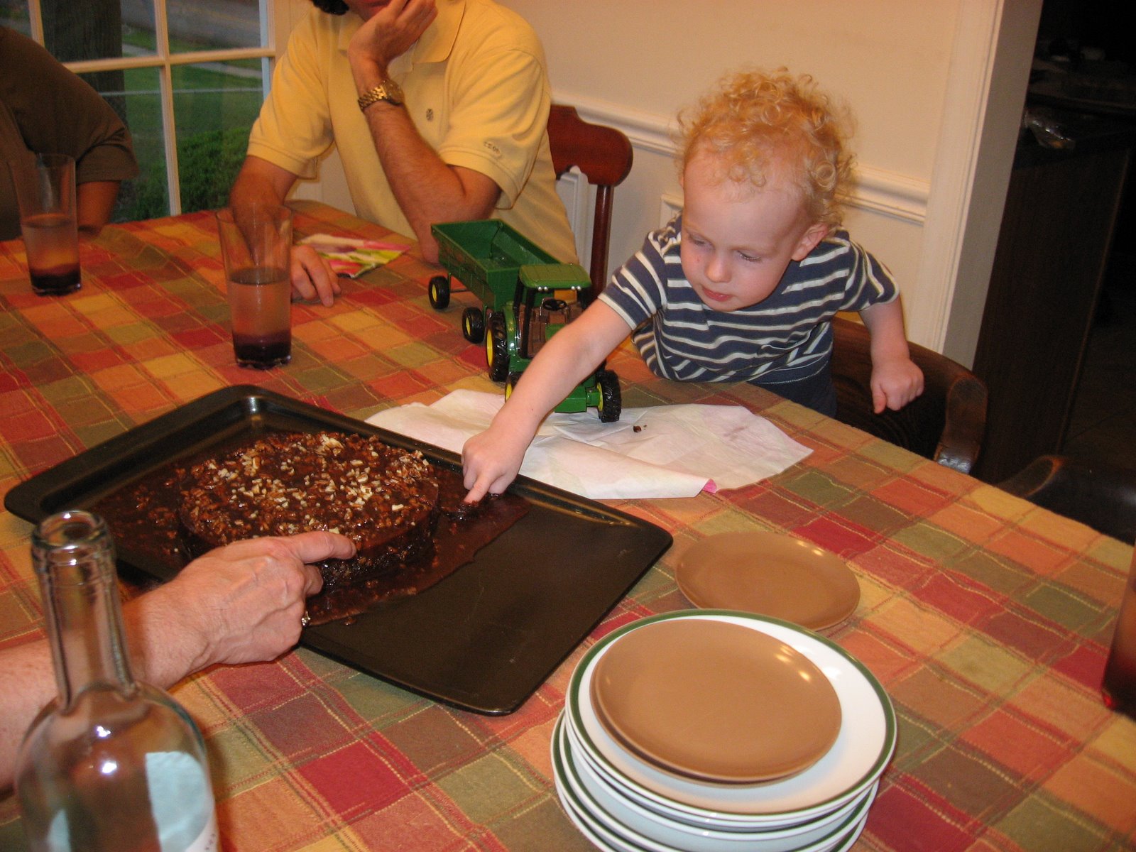 The cake itself was chocolate chip and quite good. The icing was exactly as disappointing as I expected. Ian apparently saw no difference between what he requested and what I actually did. Hooray for childhood.